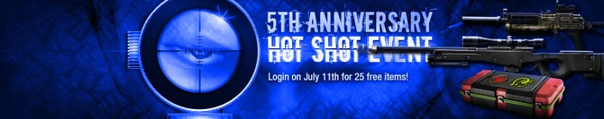 The 5th Anniversary Hot Shot Event was a Hot Shot Event that occurred on July 11th, 2013. The event consisted of 5 rounds, with each at the beginning of the hour from 1:00 to 5:00 PM (PDT). All players who had logged on during these times received the following set of rewards: