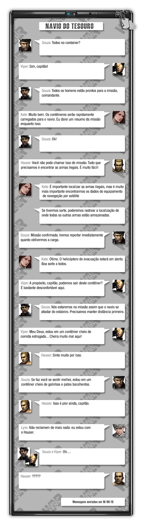 Former leader of the Special Operations Brigade in Brazil, he is known for his professional strategies and penetration tactics and urban warfare. Despite being quite faithful to the Special Operations Brigade, Souza turned away to save her younger sister and was dishonorably discharged. Now, Souza is the leader of Team Alfa and coordinates battle against international terrorism. He does not talk a lot, especially about his personal life, but is seen by other soldiers as one of the most trusted companions.