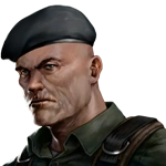 Leader of the Red Hawks, the smuggler group of weapons. It is a veteran mercenary who believes the key to victory in a war is just the weapons. So it is obsessed with getting increasingly powerful weapons. It has a short fuse and a heart of stone and do not care about his own men, he considers to be just disposable resources.