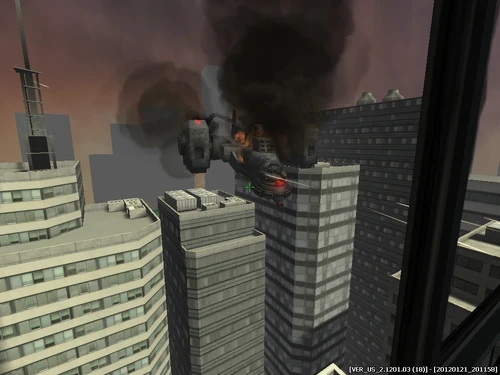 Eventually, the team proves too powerful for D.R.E.A.D's artificial intelligence to contend against. In the end, Hauser finishes it with an RPG-7 and it goes up in flames, crashing to the streets below in a fiery explosion.