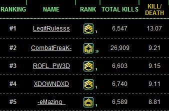 Nexon gave everyone who logged in a free KDR reset prompting many players to reset their KDRs in January 2011. Because this immediately made it more difficult to identify hackers by their ranking, players turned to Fireteam Combos (especially DT) to look for evidence of hacking, because these values were not reset.