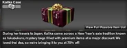 - It is also still called the Kalika Case in the item note when you receive the items from this case.