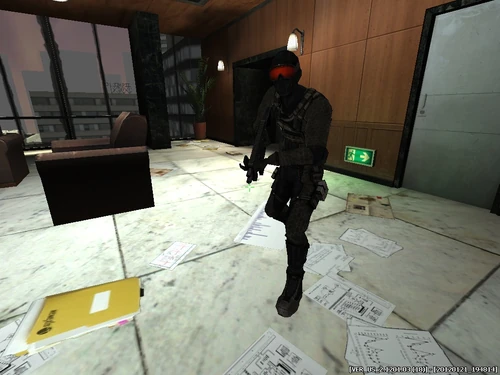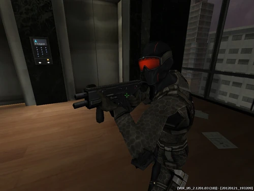 NEMEXIS Agents wear a full-body thermal suit with an overlapping vest. They also have reddish-orange goggles that cover their eyes, and their main weapon of choice is the Kriss.